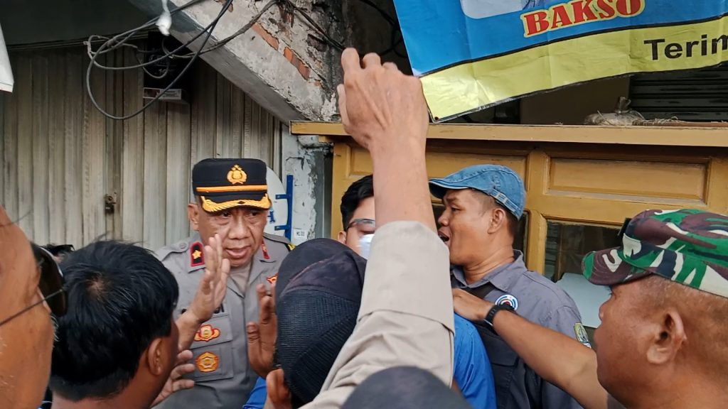Ratusan peserta aksi demonstrasi warga terhadap PT.Siantar Top,Tbk. di Jl. Cipendawa Lama pada Senin (9/09/2024), sempat di warnai dengan adanya ketegangan dengan Kapolsek Rawalumbu, Kompol Sukadi.
