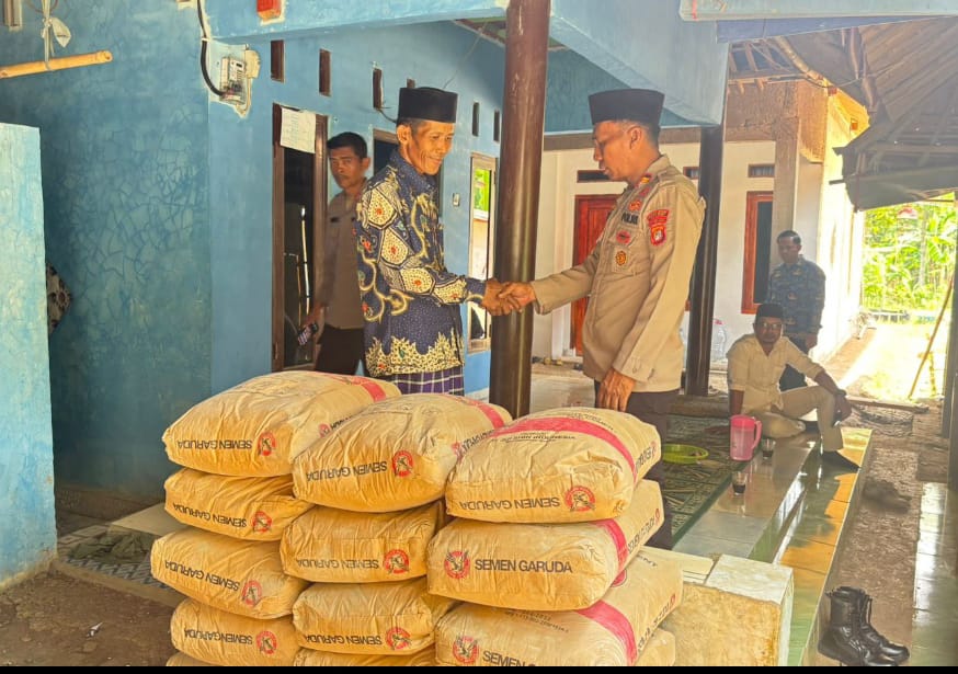 Kegiatan dipimpin langsung oleh Kapolsek Cibarusah, AKP Widi Muldiyanto, bersama jajaran Bhabinkamtibmas. Dalam kegiatan tersebut, Polsek Cibarusah menyerahkan bantuan berupa 20 sak semen dan 3 unit kipas angin kepada pengurus musholla yang diterima oleh Ustadz Asep Muhtar.