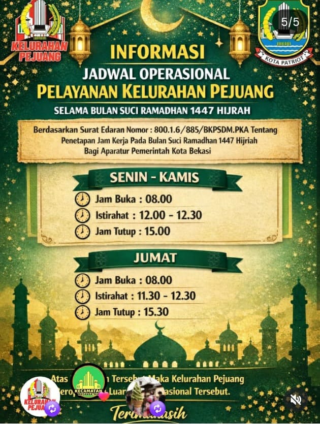 Beranda » Selama Ramadhan 1447 H, PATEN Pejuang Tetap Buka Sesuai SE Wali Kota Bekasi
